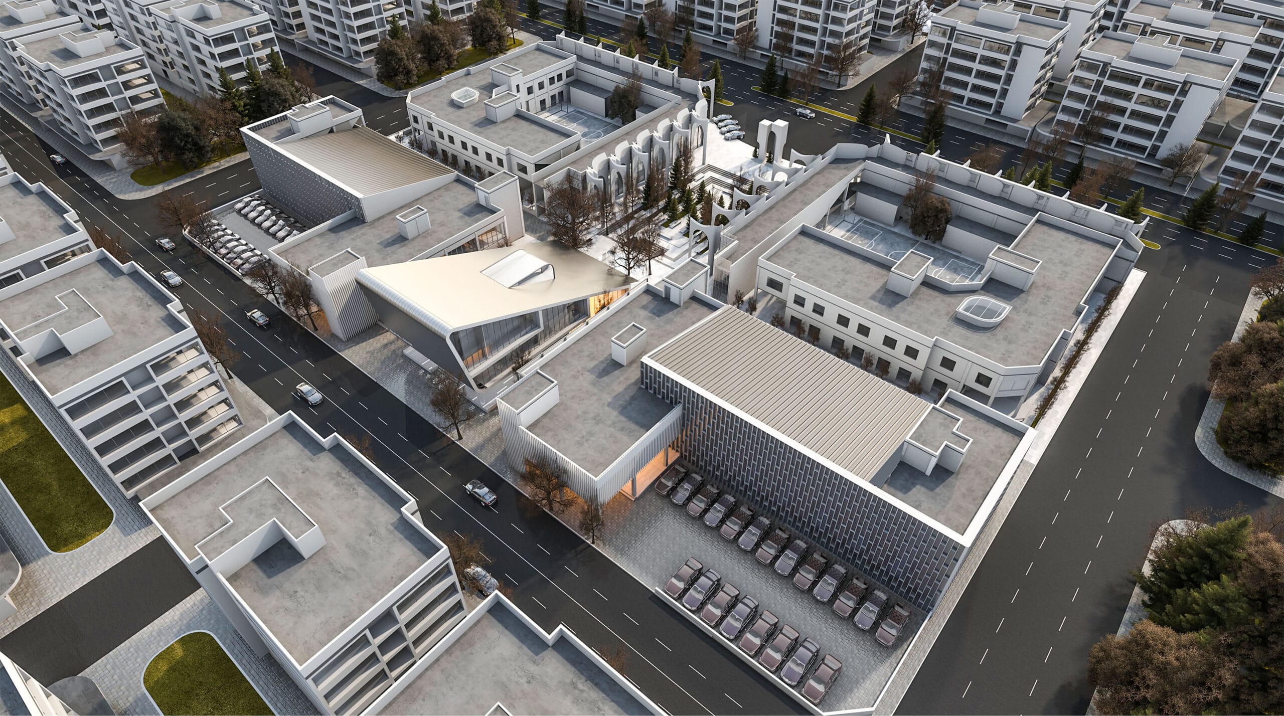 • تطبیق با محیط شهری: ساختمان اداری آرارات در تهران، اتوبان کردستان، تقاطع خیابان آرارات واقع شده است و طراحی آن باید با بافت شهری و محیط اطراف هماهنگ باشد.